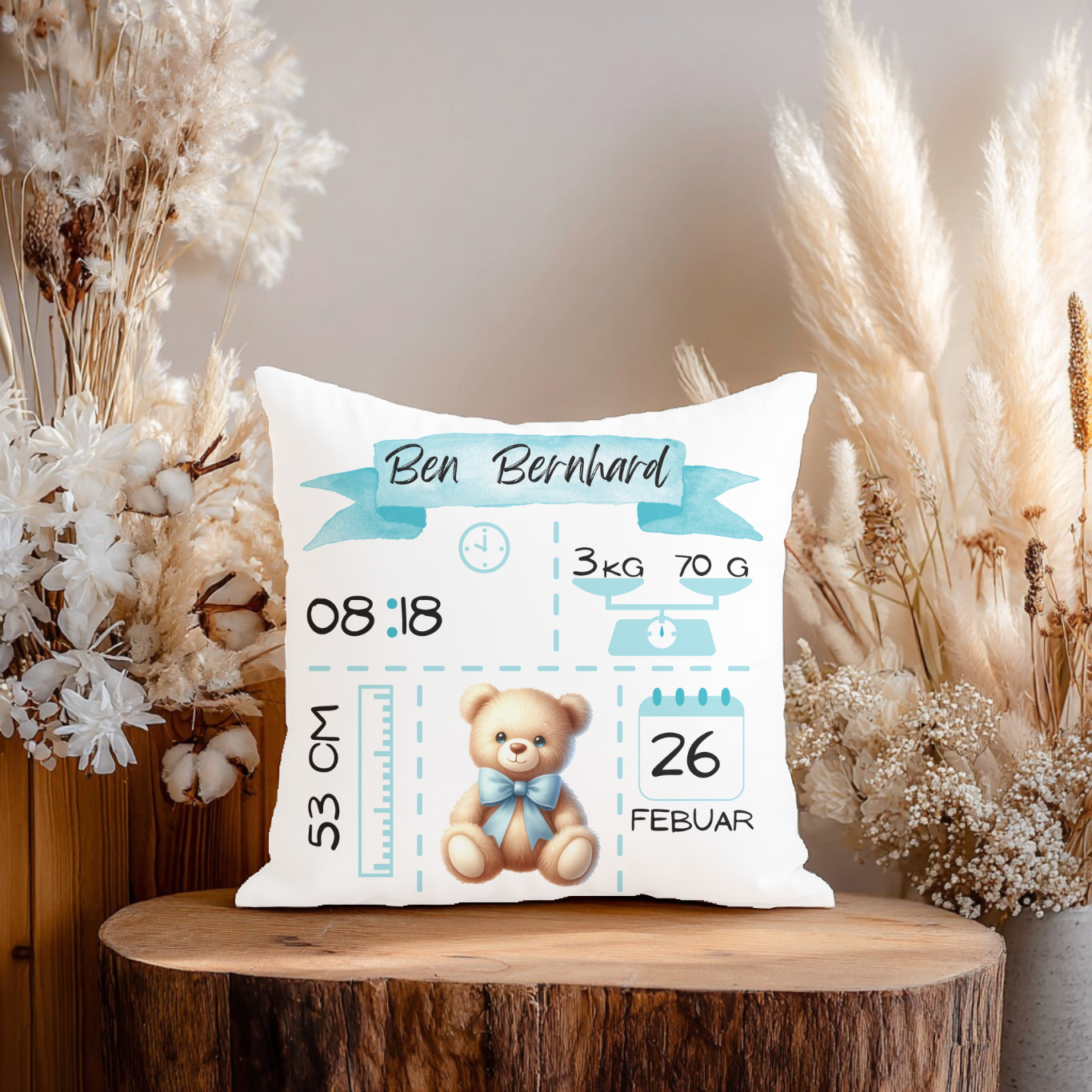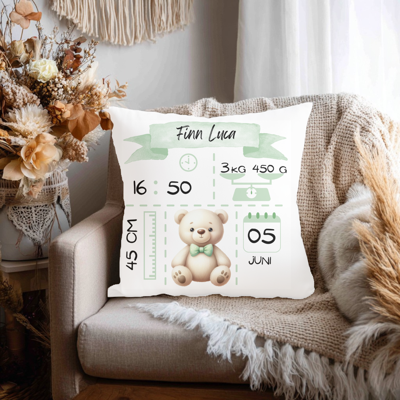 Personalisiertes Kissen mit Baby-Name & Geburtsdaten – Einzigartiges Erinnerungsstück