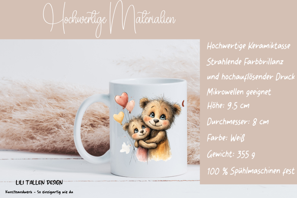 Diese hochwertige Keramiktasse mit Bärenmotiv ist ein liebevolles Geschenk für Mama oder Papa. Der Spruch „Du bist einfach unentBÄRlich“ bringt Wertschätzung und Liebe auf den Punkt. Ideal für Kaffee, Tee oder Kakao und perfekt als Geschenk zum Muttertag, Vatertag, Geburtstag oder einfach als kleine Aufmerksamkeit. Die Tasse ist spülmaschinen- und mikrowellengeeignet und hat ca. 330 ml Fassungsvermögen.
