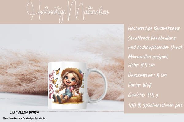 Diese Dorfkind-Tasse mit dem Spruch „Wir brauchen keinen Luxus, nur Natur“ ist die perfekte Wahl für alle, die das Landleben lieben. Das liebevolle Design mit fröhlichem Mädchenmotiv und Naturdetails macht sie zu einem besonderen Hingucker. Ideal als Geschenk für Dorfkinder, Naturfreunde und alle, die sich nach Ruhe und Freiheit sehnen. Hochwertige Keramik, langlebiger Druck und alltagstauglich für Kaffee, Tee oder Kakao.