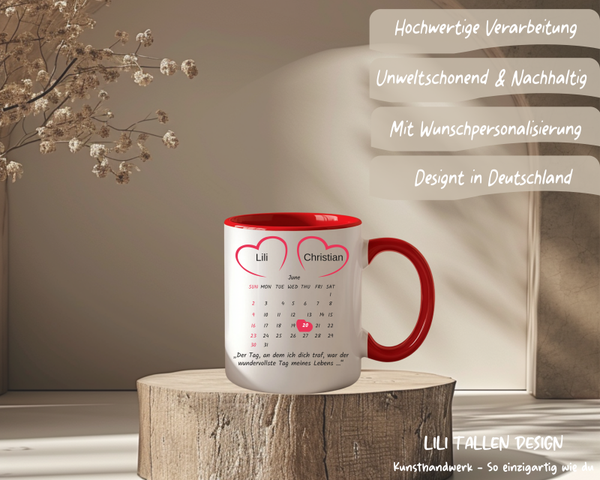Personalisierte Valentinstag Tasse mit Name & Datum – ein romantisches Geschenk für Paare