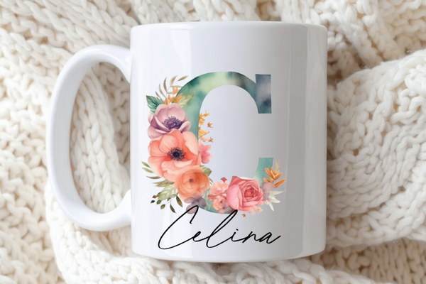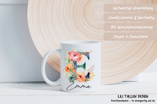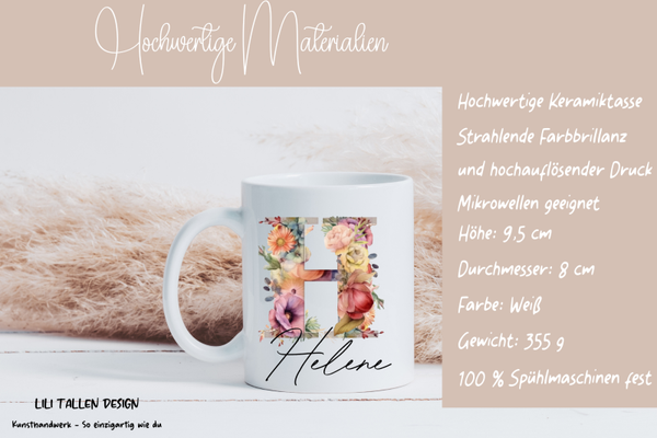Personalisierte Tasse mit Initiale und Name - Florale Buchstaben Tasse