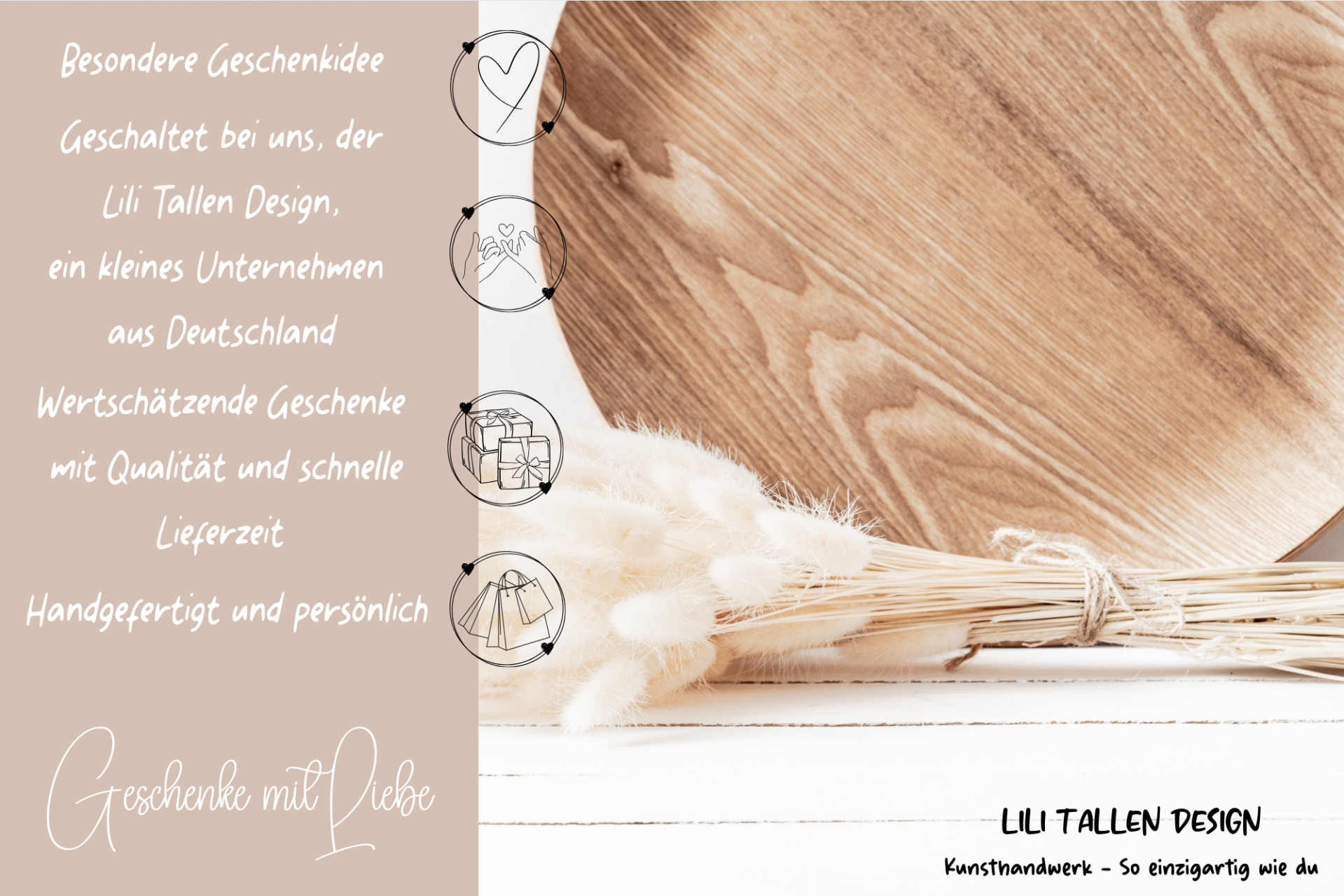Gerne können wir dir unsere Produkte auch personalisieren. Schickt uns hierzu einfach eine E-Mail mit Euren Wünschen bzw. Vorschlägen.