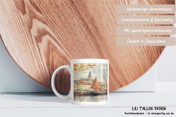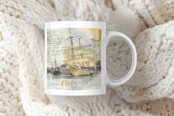 Kiel Tasse - Maritimes Stadtmotiv mit Hafen & Segelschiff | Souvenir Becher