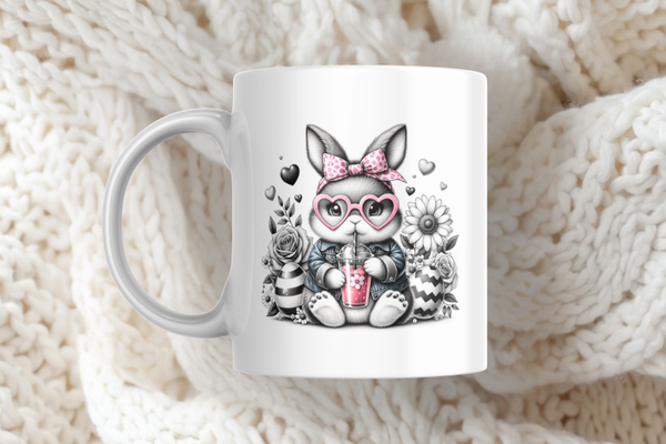 Der süße Bunny mit Herzbrille, Schleife und pinkem Getränk ist perfekt für alle, die verspielte Designs lieben. Ob als Oster-Tasse, Geschenk für Mädchen oder einfach als süßer Alltagsbegleiter - diese Tasse ist ein echter Hingucker.