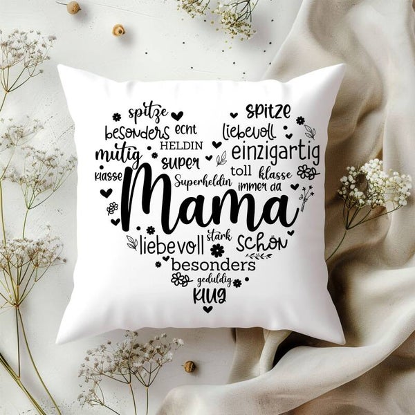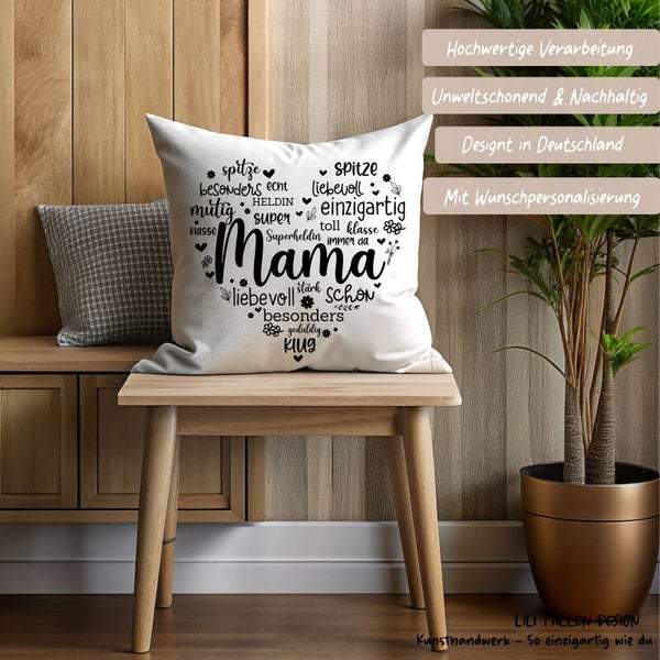 Mama Kissen Geschenk - Kissen für Mama mit Herz Wörter