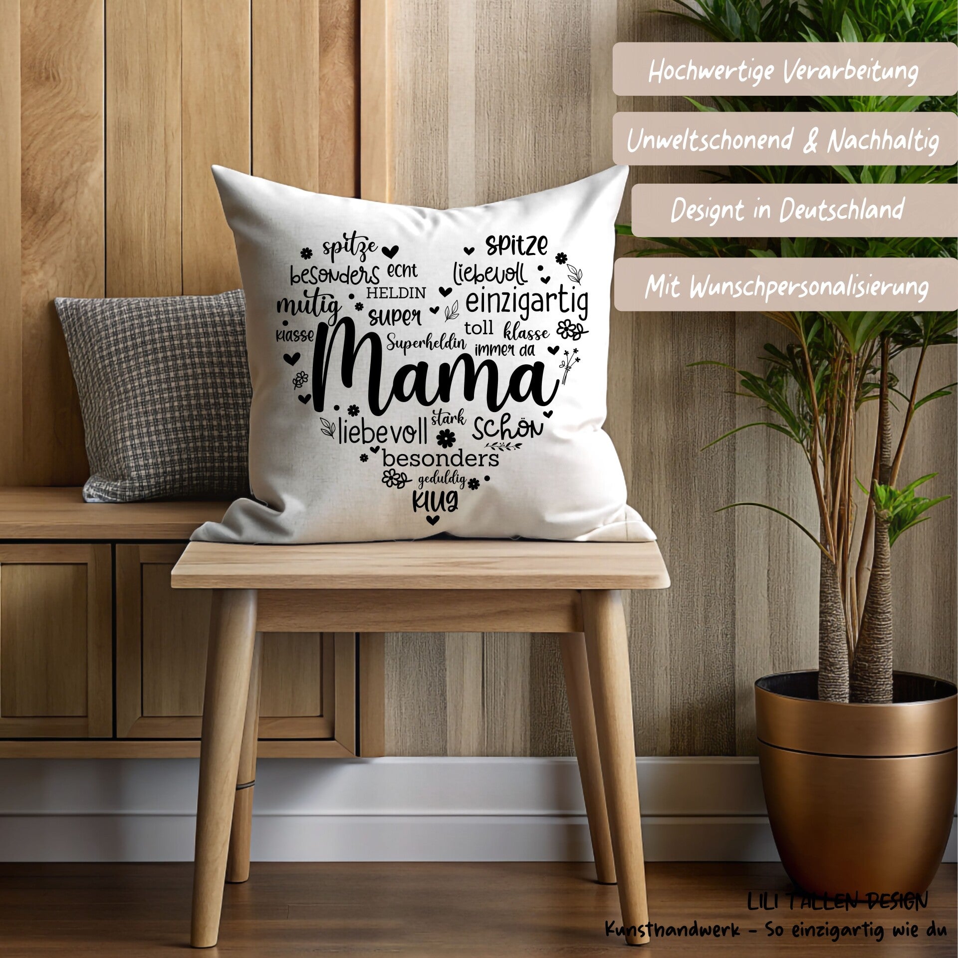 Ob zum Muttertag, Geburtstag oder einfach als kleine Überraschung – dieses Kissen bringt Wärme, Liebe und Wertschätzung in jedes Zuhause.
